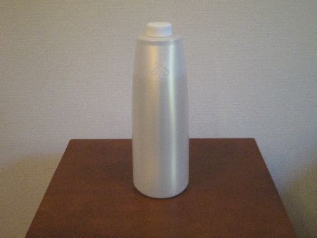 写真中が2液の過酸化水素水で、その中に後処理液を少量入れて混ぜると写真下のように変化します。水と酸素に別れた状態です。