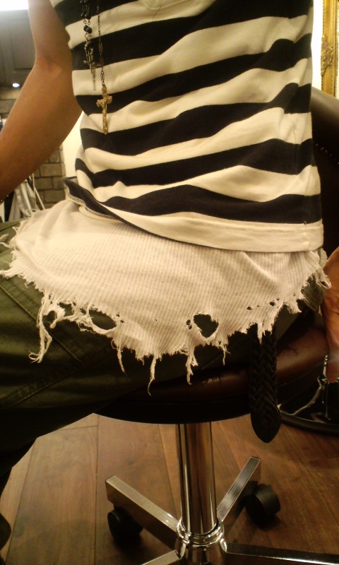 ぼろタンクをボーダーTの裾から出した