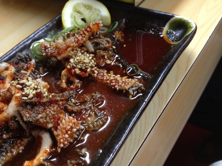 ピリ辛のタレに、とろとろのチーズとコーンが入っていて
